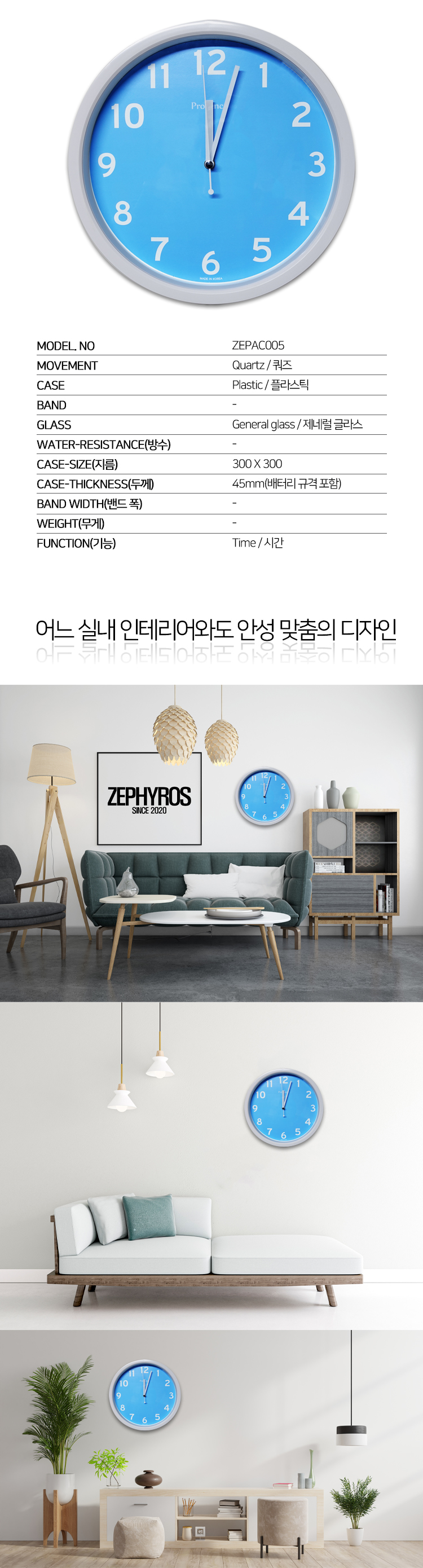 하늘색 벽 시계(ZEPAC005)