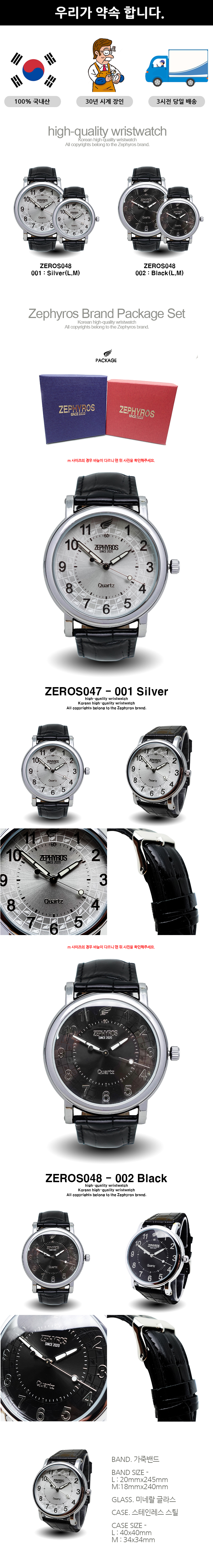 제피로스 코리아 ZEROS048 명품 고급 손목 시계 : 블랙(L,M)