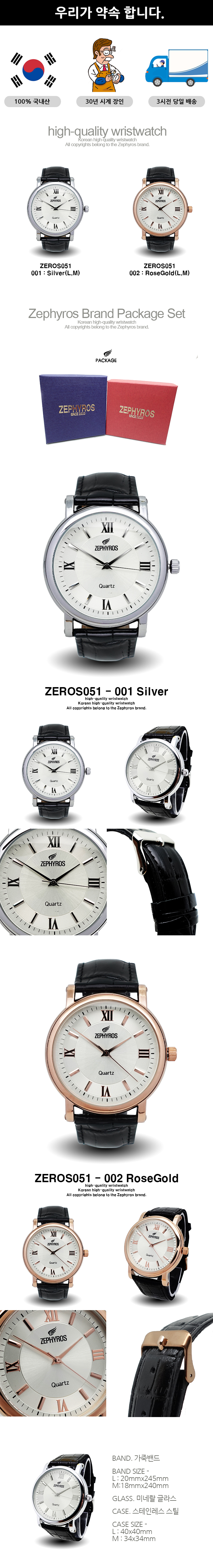 제피로스 코리아 ZEROS051 명품 고급 손목 시계 : 실버(L)