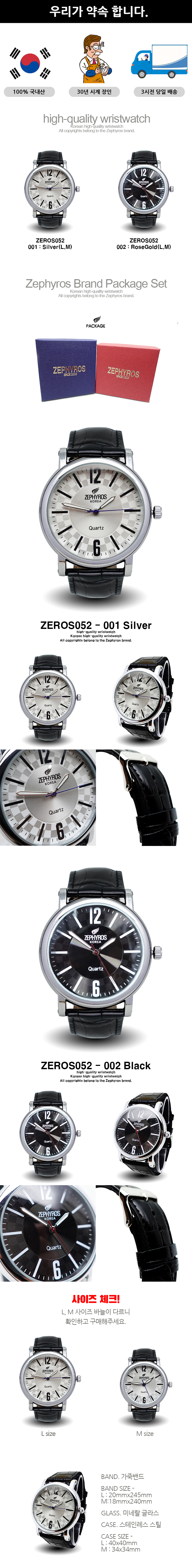 제피로스 코리아 ZEROS052 명품 고급 손목 시계 : 실버(L,M)