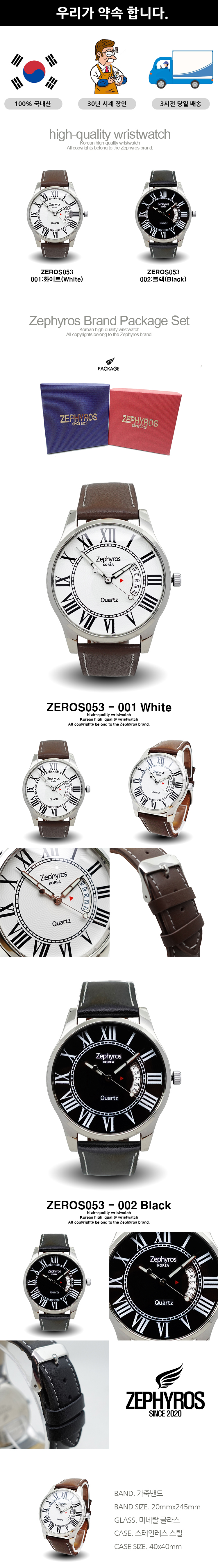 제피로스 코리아 ZEROS053 명품 고급 손목 시계 : 블랙