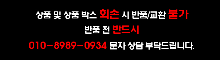 · 판촉 상품은 반품 불가합니다. · 사용 흔적이 있는 상품은 교환 및 반품이 불가합니다. · 온라인 주문 상품 맞교환 또는 타 상품으로 교환이 불가합니다. · 교환, 환불은 반품 상품이 도착된 이후 처리해드리며, 맞교환 또는 타 상품 교환은 불가합니다. |